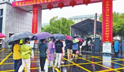 6月20日,我市2025年中考正式拉开帷幕,4.4万余名九年级考生自信从容走进考场,全力以赴书写青春答卷。图为考生有序进入考场。
