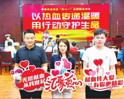 6月27日,孝感市直单位“庆七一”无偿献血活动在市民之家举行。来自市直机关各单位的党员干部职工踊跃参与,用热血践行初心使命。据统计,当天共有106人参与献血,累计献血量达34800毫升。全媒体记者李琛通讯员柯文康摄