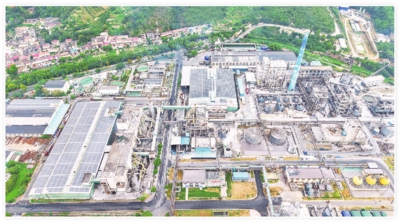 8月7日,鸟瞰大悟县阳平镇能源结构改善后的黄麦岭磷化工有限责任公司。