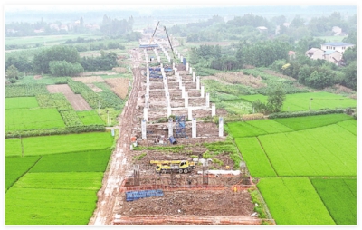 作者: 全媒体记者李文勇 来源:孝感日报 字数:98 8月12日,在硚孝高速西延线孝南区卧龙乡白龙村施工现场,工人们正在浇筑桥墩,整个施工现场繁忙而有序。该线路全长约56.1公里,设计时速120千米、双向6车道。■全媒体记者李文勇摄