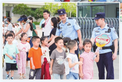 作者: 来源:孝感日报 字数:202 9月1日,市公安局巡特警支队民警在市文昌中学澴川校区门前护送学生放学。为切实做好护学工作,孝感公安提前联合教育部门细化“护学岗”点位、力量及时段,结合今秋校园实际情况优化警力配置,落实“定人、定岗、定责”压实护学责任。同时,同步推进“高峰勤务”机制,通过显性用警强化校园周边巡逻频次,确保校园周边“见警察、见警车、见警灯”,全力保障开学季校园及周边区域安全。(全媒体记者吴垠通讯员喻文瀚摄)
