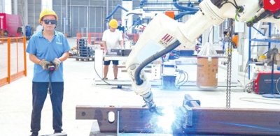 作者: 全媒体记者吴垠 特约记者易荣波 来源:孝感日报 字数:141 近日,大悟县湖北钜鼎轨道交通装备有限公司员工在车间操作自动焊接机器人焊接钢轨。该公司是专门从事铁路设备研发、制造、销售等的现代化装备制造企业,公司自2025年5月正式投产以来,已签订单2000万元。项目全部建成投产后,预计年产值将达1亿元。全媒体记者吴垠特约记者易荣波摄