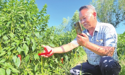 8月18日,安陆市烟店镇袁畈村美乡合作社的社员在袁畈辣椒原产地拍摄视频。记录辣椒生长情况的视频即时传送给深圳客商,合作社根据客商订单需求,组织采摘发货。通过冷鲜速递,袁畈辣椒第二天就能端上深圳市民的餐桌。