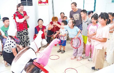 作者: 全媒体记者吴垠 通讯员汤慧玲 来源:孝感日报 字数:172 8月28日,孝南区祝站镇的留守儿童们在祝站村活动中心玩起了套大鹅游戏。当天,市巾帼志愿者协会联合孝南区妇联在祝站镇开展“情暖童心相伴成长”志愿服务活动。活动中,爱心妈妈们与留守儿童共同参与了蒙眼踏步走、套大鹅、活字印刷体验等项目,还现场为孩子们送上爱心玩具和书籍,让留守儿童在欢乐氛围中感受到温暖与关爱。全媒体记者吴垠通讯员汤慧玲摄