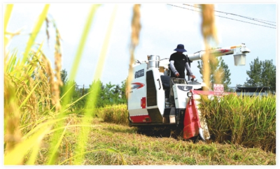 作者: 特约记者王代金 通讯员王鹏 来源:孝感日报 字数:122 9月3日,安陆市烟店镇陈巷村,收割机在抢收中稻。由于推广优质良种和科学管理,今年该市总产有望达到41.2万吨,同比增产10%。目前,江苏、河南和本地的数千台农机正展开会战,预计在本月中旬收割完毕。特约记者王代金通讯员王鹏摄
