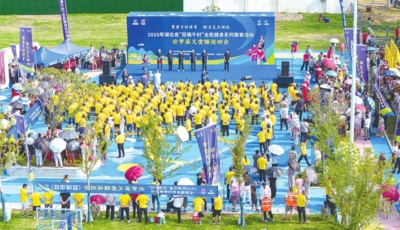 作者: 全媒体记者闵丽萍 特约记者聂杰杰 通讯员董琦 来源:孝感日报 字数:1180 活动现场。■特约记者周亚雄摄 热情的观众。■特约记者聂杰杰摄 世界健身气功冠军王先文现场教学。■通讯员董琦摄 扁担挑粮比赛。■全媒体记者闵丽萍摄 拔河比赛。■特约记者聂杰杰摄 乒乓球比赛。■全媒体记者闵丽萍摄 击鼓颠球比赛。■全媒体记者闵丽萍摄 环村健康跑。■特约记者周亚雄摄 9月4日,2025年湖北省“百镇千村”全民健身系列赛事活动走进云梦县义堂镇。千余名运动爱好者齐聚该镇体育公园,在欢笑与汗水中激烈角逐,展现出蓬勃向上的精神风貌和乡村凝聚力。赛事设置篮球、乒乓球、广场舞、拔河四项规定项目,以及协力竞走、羽毛球、击鼓颠球、扁担挑粮等自选项目。其中,“扁担挑粮”等乡土气息浓厚的项目,既传承农耕文化,又增强了趣味性,引来观众阵阵掌声,成为全场亮点。环村健康跑为活动拉开序幕。当天上午,400余名跑步爱好者从体育公园出发,沿建新南路穿梭于乡村田园之间。队伍如一道流动的彩虹,途经白马嘴、金龙古寺、义堂镇人民政府等地,完成全程3公里赛程。沿途村民自发组成啦啦队,挥舞彩旗呐喊助威,欢呼声、脚步声、欢笑声,汇成一首动人的乡村交响曲。来自黄孝村的村干部彭连火在健康跑中率先冲过终点。“真没想到能拿第一,太开心了!”他笑着说。自八月报名以来,他每天坚持快走约1万步,“在家门口参加省级比赛,氛围好,大家都特别高兴!希望这样有意义的活动能一直办下去。”“左、右,左、右……”协力竞走赛场上,义堂镇三合村党总支书记蔡华平与队员们迈着整齐步伐,喊着口号冲向终点。“烈日下汗水模糊了视线,但我们的心更齐了。”蔡华平表示,“要把这种同舟共济的精神带回乡村振兴一线!”击鼓颠球比赛同样精彩。学区代表队队员陈倩与队友围成一圈,专注控制鼓面节奏,每成功一次都迎来阵阵欢呼。“这不仅考验协作,更增进了感情。”陈倩笑着说,“我们要把比赛中的热情带到工作中。”“冠军校园行”活动特邀健身气功国际大师、全国太极拳冠军王先文,先后走进义堂中学、义堂小学和义堂恒新学校。他以“以热爱为引,以坚持为路”为主题,分享体育人生,并现场指导学生动作技巧,传播传统体育文化。“孩子们的认真和热情令人感动。”首次到访云梦的王先文说,“这是一次双向奔赴、共同成长的旅程。”场外,“体测惠万家”活动在义堂镇公租房一楼同步开展,为居民提供免费体质检测,推动健康理念深入基层。作为2025年湖北省“百镇千村”全民健身系列赛事活动的第14站,云梦义堂镇站是暑期后的首场活动。自五月启动以来,该系列赛事已覆盖全省超千万人次,成为推动全民健身、助力乡村振兴的重要平台。近年来,云梦县积极构建“15分钟健身圈”,建成多个体育公园与社区运动中心,广泛开展全龄段体育活动。义堂镇是典型代表:盘活闲置土地建成省级标准化体育公园,日均接待超1000人次;校园体育成效显著,中学生近视率同比下降3.2%;联动周边开展多项联赛,让体育活力渗透城乡角落。此次赛事不仅展示了云梦县全民健身的丰硕成果,更以体育为纽带,增强乡村凝聚力,将拼搏、协作、奋进的体育精神融入百姓日常,为乡村振兴注入源源活力。