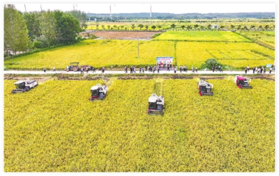 作者: 来源:孝感日报 字数:0 9月17日上午,孝感市水稻低茬收割机收减损技能比武在应城市田店镇畅马村举行。进入决赛的6名农机手围绕水稻机收速度、损失率、稻茬高度等展开激烈角逐。此次比武进一步推广了水稻低茬收割技术,同时能够有效提高农机手们的减损意识。 裁判员们在田间认真记录比赛数据。■全媒体记者徐文通讯员卢慧贤许曼丽摄