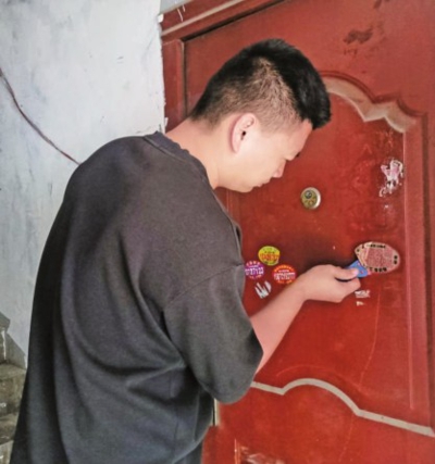 9月17日,阳光学苑小区里,社区工作人员正在清除居民门上张贴的小广告,不一会儿,门上随意张贴的小广告被“一扫而光”。这是孝南区广场街道办事处开展文明城市创建工作的一个缩影。
