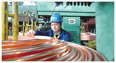 作者: 来源:孝感日报 字数:183 10月17日,大悟县湖北皓润新材料科技有限公司生产车间,技术人员正在对产品进行检验。该公司是一家从事铜及铜合金线材、接触网导线、光亮铜杆、束线、绞线等新材料加工制造、销售的科技型企业,近年来加大科研投入,积极转型升级。今年1月至9月,公司生产销售再生有色产品6.85万吨,销售额达43.88亿元。(全媒体记者李文勇特约记者易荣波李怡摄)