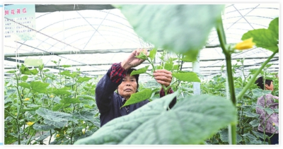 作者: 来源:孝感日报 字数:118 10月16日,孝南区朋兴乡长风村“千亩方”现代农业产业园,村民在温室大棚里打理鲜花黄瓜。近年来,孝南区从促进农业现代化、增加农民收入入手,大力发展特色农业,促进农业提质增效、农民增收致富。(全媒体记者李文勇摄)