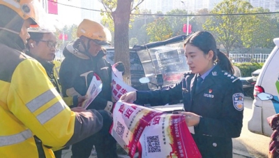 作者: 全媒体记者贾国红 通讯员乐润 刘阳 来源:孝感日报 字数:111 11月19日上午,汉川市禁毒办聘请30名外卖小哥担任禁毒宣传员,在外卖小哥的送餐盒上张贴禁毒宣传海报,向他们发放禁毒宣传卡片。外卖小哥们表示,把禁毒知识和美食一同送往千家万户。全媒体记者贾国红通讯员乐润刘阳摄