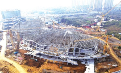 作者: 全媒体记者卫冬 来源:孝感日报 字数:166 11月22日,航拍镜头下的安陆市体育中心雏形初显。日前,该中心主体钢结构全面封顶,将进入装饰装修与机电安装阶段。该中心总占地面积约310亩,建有专业足球训练基地、室内体育运动基地、现代化游泳馆及配套服务设施。该项目建成后,将成为一座集体育赛事、商业运营、市民休闲等功能于一体的综合性城市文体中心。全媒体记者卫冬摄