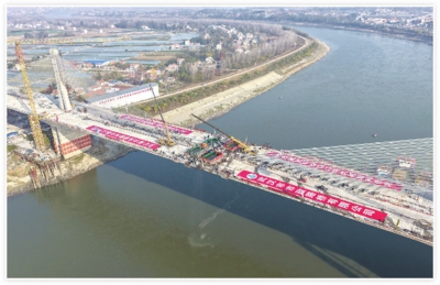 作者: 全媒体记者贾国红通讯员陈华昌 来源:孝感日报 字数:121 12月8日上午9时许,汉川市马口汉江特大桥合龙,标志着武天高速通车进入倒计时。该桥是武天高速跨越汉江的关键控制性桥梁工程,双向六车道,全长570米,主跨260米,跨径位列全国同类型桥梁第三位。■全媒体记者贾国红通讯员陈华昌摄