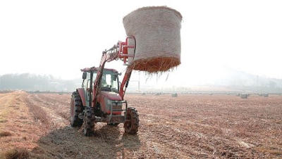 12月初,在大悟县三里城镇望山村的300亩连片稻田里,秋收后的田间一派热火朝天的繁忙景象。村民们三五成组,将散落田间的秸秆抱拢归堆;一台台秸秆打捆机在田埂间来回穿梭,伴随阵阵轰鸣,秸秆被顺势“吞”入机腹,经压缩、捆扎等一系列规范工序后,一个个圆滚滚、紧实饱满的草捆从机尾有序“吐”出,整齐码放在田间地头。