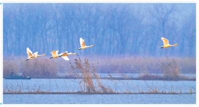 作者: 全媒体记者贾国红 通讯员张静波 来源:孝感日报 字数:200 眼下,汉川汈汊湖湿地迎来了越冬候鸟迁徙高峰。上万只小天鹅、斑头雁等鸟类,在水天一色间翱翔栖息。汈汊湖是全国最大的内陆型封闭式湖泊,与汉江相连。近年来,当地实施退垸还湖、水系连通等六大工程,湖泊面积恢复至48.7平方公里,水质稳定在Ⅲ类标准。良好的生态环境让大量候鸟飞抵汈汊湖栖息越冬,最高峰时数量超过10万只,越冬水鸟种类已达100多种。全媒体记者贾国红通讯员张静波摄