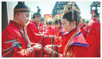 作者: 全媒体记者闵丽萍 特约记者陈保忠 来源:孝感日报 字数:179 12月28日,在云梦县博物馆“云间集”,一场庄重典雅、古风盎然的集体婚礼温情上演。20对新人身着传统婚服,依楚婚古礼,行红绸之仪,在礼乐悠扬、祝福满堂中喜结连理。据悉,本次婚礼由云梦县民政局、文旅局、润泽农旅投联合主办,县妇联、计生协、阳光社工中心协办,旨在打造一场融传统礼仪与现代文明于一体的婚礼盛事。全媒体记者闵丽萍特约记者陈保忠摄