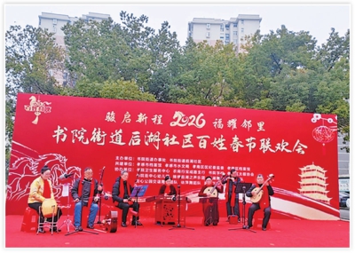作者: 来源:孝感日报 字数:194 1月28日,孝南区书院街道后湖社区“骏启新程2026福耀邻里”百姓春节联欢会在电力小区广场热闹开演。现场,武当《雪花剑》、群体舞蹈《这条街》《独角戏》、大合唱《长江之歌》、琵琶演奏《萱草花》等节目精彩纷呈,引来台下居民掌声阵阵。互动环节里,居民们踊跃参与“光盘行动”“文明养犬”“老街巷保护”“志愿服务”等知识问答。(全媒体记者黄佐君通讯员曹朝霞摄)