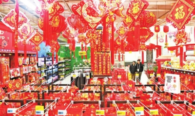 作者: 全媒体记者李文勇 来源:孝感日报 字数:97 1月30日,市民在孝感城区一超市购买新春饰品。春节临近,各地大街小巷年味渐浓,超市里挂满春联、福字、中国结、红灯笼等,人们纷纷驻足购买,在喜庆的氛围中喜迎马年的到来。全媒体记者李文勇摄