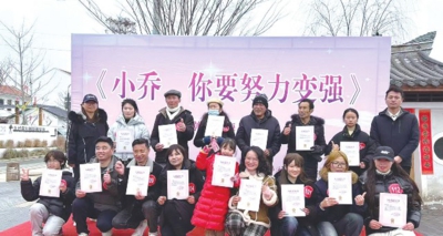 政策有了,谁来干?镇里迅速行动起来。就在县里首部试水短剧《回家过年》启动后,伍洛镇马上组织“跟班学习专班”,成员是镇村干部和村里的研学老师。原以为只是学习观摩,没想到第一部戏拍完,专班不但没散,反而直接升级成了新剧《小乔,你要努力变强》的创作核心。