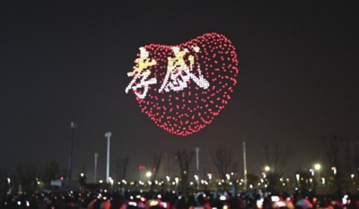 作者: 全媒体记者李文勇 摄 来源:孝感日报 字数:111 2月17日,农历大年初一晚,孝爱之城·甜蜜之地——“欢孝过大年”主场活动在孝感奥体中心举行,6000架无人机凌空作画,将浓浓年味与科技之光洒满全城。图为无人机呈现的“我爱孝感”画面。■全媒体记者李文勇摄