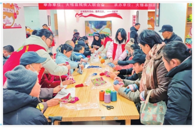 作者: 全媒体记者吴垠 通讯员洪开艳 摄 来源:孝感日报 字数:175 近日,大悟县残联在开发区西岳社区“残疾人之家”举办手工制作与书画体验活动,37名残疾人及其家属齐聚一堂。活动邀请残疾人书画爱好者现场挥毫赠字送画,工作人员通过视频演示、耐心指导,帮助参与者完成艾草锤作品。活动尾声,工作人员为每位残疾人送上慰问品,让参与者在丰富生活的同时,切实感受到社会关怀。(全媒体记者吴垠通讯员洪开艳摄)