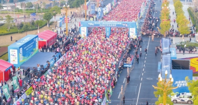 3月8日7时30分,湖北省第十七届运动会田径(马拉松)比赛暨2026孝感马拉松在市文化中心鸣枪起跑。全媒体记者李晨摄