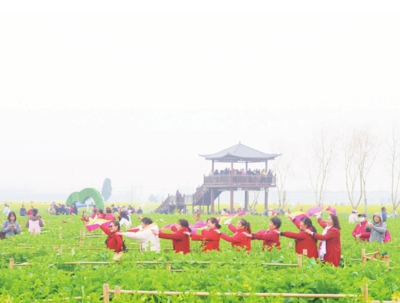 作者: 全媒体记者杨勘 特约记者聂杰杰 通讯员施贤阳 来源:孝感日报 字数:2593 油菜花海文化旅游活动现场。特约记者周亚雄 摄 油菜籽供需签约。胡金店政府供图 西藏昂仁县民间艺术团表演。胡金店政府供图 游客打卡留念。通讯员张红梅 摄 游客乘坐观光小火车。特约记者彭双明 摄 游客购买品尝胡金店水汽包子。特约记者周亚雄 摄 游客打卡留念。胡金店政府供图 全媒体记者杨勘特约记者聂杰杰通讯员施贤阳三月春风拂澴川,万顷金花绽云梦。3月8日,清晨的第一缕阳光掠过府河之滨,云梦县胡金店镇的近万亩油菜花海便被唤醒。鎏金般的花浪随风起伏,清甜的花香漫溢田间,2026年云梦县油菜花海文化旅游活动开幕式暨楚油翁7D菜籽油品牌发布仪式,在这片金色盛景中启幕。八方游客与当地乡亲齐聚花田,共赴这场春日之约,也共同见证“一朵花”催生“一条链”的乡村振兴新实践。花海融文旅楚风简牍醉游人驱车驶入胡金店镇,目之所及皆是金色海洋。近万亩油菜花海在春风里翻涌,与质朴民居、纵横交错的田垄相映成趣。活动现场彩旗轻扬、人群熙攘,恰逢“三八”国际妇女节,不少女游客身着盛装,在花田间笑意盈盈,为这片花海平添了几分暖意。舞台上,云梦楚剧团的演员们唱响醇厚楚腔,熟悉的曲调引得台下乡亲跟着哼唱;来自西藏昂仁县民间艺术团的演员们献上洁白哈达,跳起热情的民族舞蹈,跨越山海的文化交融,让现场掌声此起彼伏。舞台之外,更有别样热闹。汉服爱好者轻摇罗扇,穿梭在花田间打卡留影;不远处的农夫市集里,水汽包子、米豆腐等本地小吃香气四溢,摊主们的吆喝声、游客的欢笑声,交织成最动人的乡村烟火。今年的花海,最让游客惊喜的是藏在金色里的“文化密码”。走进215亩核心观赏区,30亩巨幅油菜花海勾勒出秦吏“喜”伏案著牍的模样,复刻着云梦睡虎地简牍的千年故事;20亩“卧鹿立鸟”迷宫藏着楚文化韵味,20亩彩色油菜花带如彩虹铺展,让古老的简牍文化、楚文化变得可触摸可亲近。“这才是云梦的独特味道!”来自县城的摄影爱好者沈友望操控着无人机,快门声接连不断。他望着“秦吏著牍”的花海图案感慨:“两千多年前简牍从云梦出土,两千多年后花海在这里绽放,这是历史与当下的隔空对话。”开幕式上,云梦县文旅局现场推介春季赏花精品线路,将博物馆、楚王城、祥云湾与这片金色花海串联起来。“我们想让游客知道,来云梦,看的不仅是花,更是一方水土的文化根脉。”工作人员介绍,为方便市民和游客便捷踏青赏花,从3月7日起,云梦县专门开通了楚王城公园至胡金店镇油菜花海的免费定制赏花专线,切实打通春日出行的“最后一公里”。73岁的武汉游客张春香和姐妹们正对着花海拍视频,她笑着说:“年轻时来云梦,满眼都是朴素的乡村模样,现在美得像画里一样,变化太大了。”科技兴产业一粒菜籽串全链开幕式现场,红绸缓缓揭开,“油菜专家工作站”的牌匾在阳光下熠熠生辉。这块牌匾的落地,标志着云梦油菜产业提档升级的“智慧大脑”正式扎根,也意味着中国农科院油料作物研究所的技术支撑,将全程护航当地油菜产业发展。不远处的楚油翁7D功能性油脂生产基地内,崭新的生产线整装待发,只待3月底全面投产。“从2021年秋播开始,我们就和云梦并肩,为油菜产业量身定制发展规划。”中国农科院油料作物研究所成果转化处处长李俊在发布仪式上坦言。如今,这份规划已化作田间地头的生动实践:高产高油的“中油杂501”新品种全面推广,北斗导航精量播种让每一寸土地都物尽其用,无人机化控技术让田间管理更精准高效。科技赋能带来了实打实的效益——相比传统种植,油菜出油率提升4个百分点以上,亩产增长39%,带动农户亩均增收800元。当天发布的“楚油翁”7D浓香菜籽油,正是科技赋能的最新成果。企业代表陈新红站在发布台前,语气坚定:“我们依托7D绿色高效加工技术,实现了油菜籽安全、营养、低耗、高效的高值化加工。接下来,我们要打造‘农业种植+工业观光+旅游体验’的融合模式,让小小油菜籽成为撬动乡村振兴的黄金支点。”两轮集中签约环节,将现场氛围推向新的高潮。青少年实践基地落地、油菜籽供需合作达成,从良种繁育到精深加工,从科普研学到品牌营销,一条从田间直达餐桌的油菜全产业链就此闭环成型。预计年产值突破8000万元的产业蓝图,让“荆楚油菜第一镇”的品牌愈发鲜亮。花田聚烟火沃土增收启新程花海的热闹,终究要落到乡亲们的荷包里;春日的盛景,最终要化作百姓的幸福生活。在胡金店镇,连续5年举办的油菜花海文化旅游活动,不仅让乡村面貌焕然一新,更让村民在家门口吃上了“旅游饭”,这片金色花海,早已成为名副其实的“致富花海”。临近中午,盛砦村“金华土菜馆”的灶台热气腾腾。54岁的老板盛金华穿梭在餐桌间,忙得脚不沾地。灶台上,刚出笼的水汽包子冒着氤氲热气,香气飘满院落。“油菜花开这几个月,一天能接待三四十桌客人!”她忙着手里的活计,笑容格外灿烂。据介绍,这家土菜馆平日里是服务村里老人的幸福食堂,赏花季便扩大规模,成为游客打卡的农家餐厅。“淡旺季互补”的模式,让盛金华的日子越过越红火。花海核心区的农夫市集里,油菜薹、土鸡蛋、蜂蜜等农特产品琳琅满目。盛砦村党支部书记肖燕武望着来来往往的人群,眼里